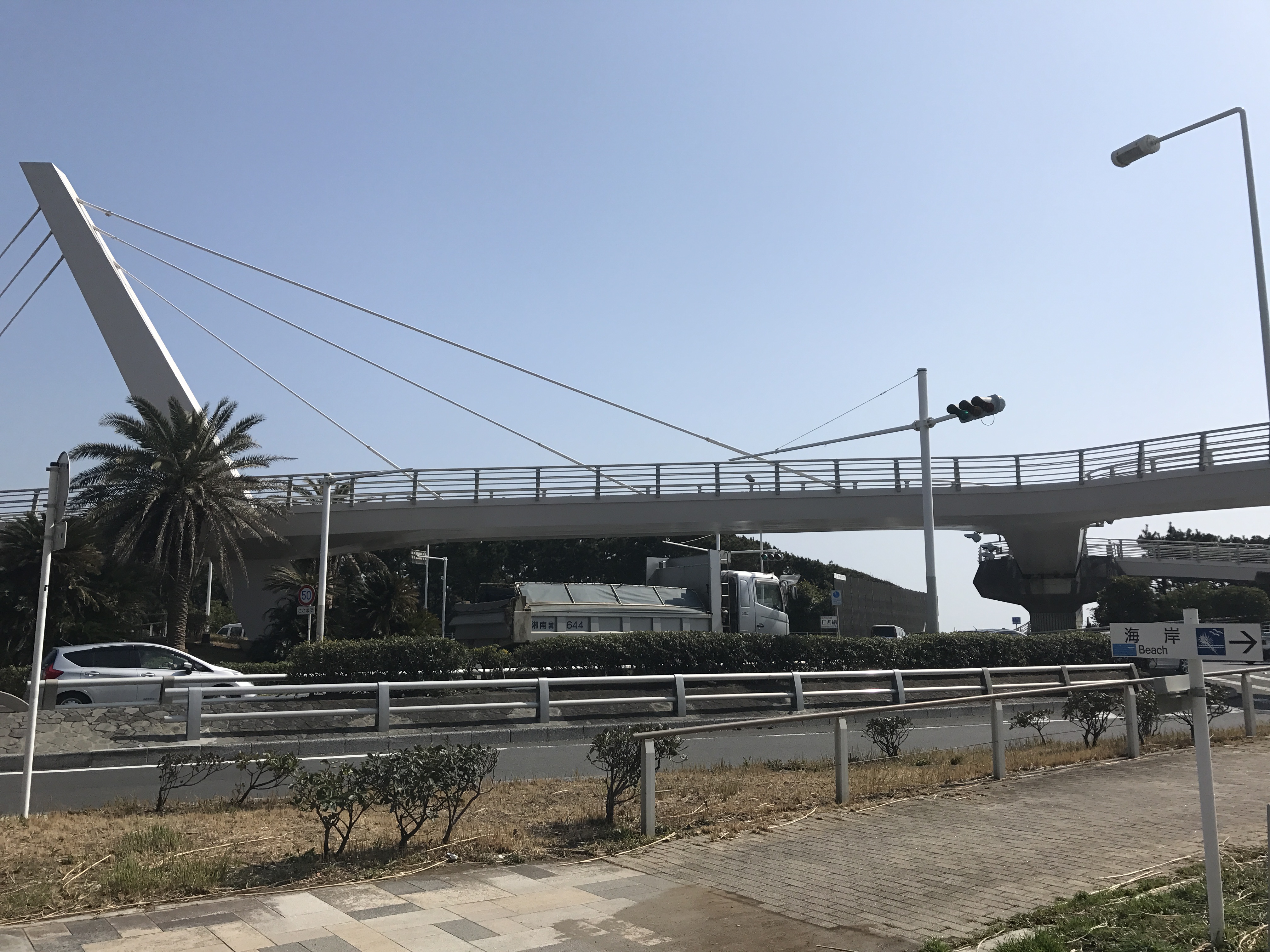 海沿いのコースとは言え、防砂林に囲まれている為、海はあまり見えませんでしたが、走りやすい綺麗な歩道で、湘南大橋からは地平線まで続く、綺麗な海が見ることができました!(じゃあそっちのアングルで撮れよって。笑)